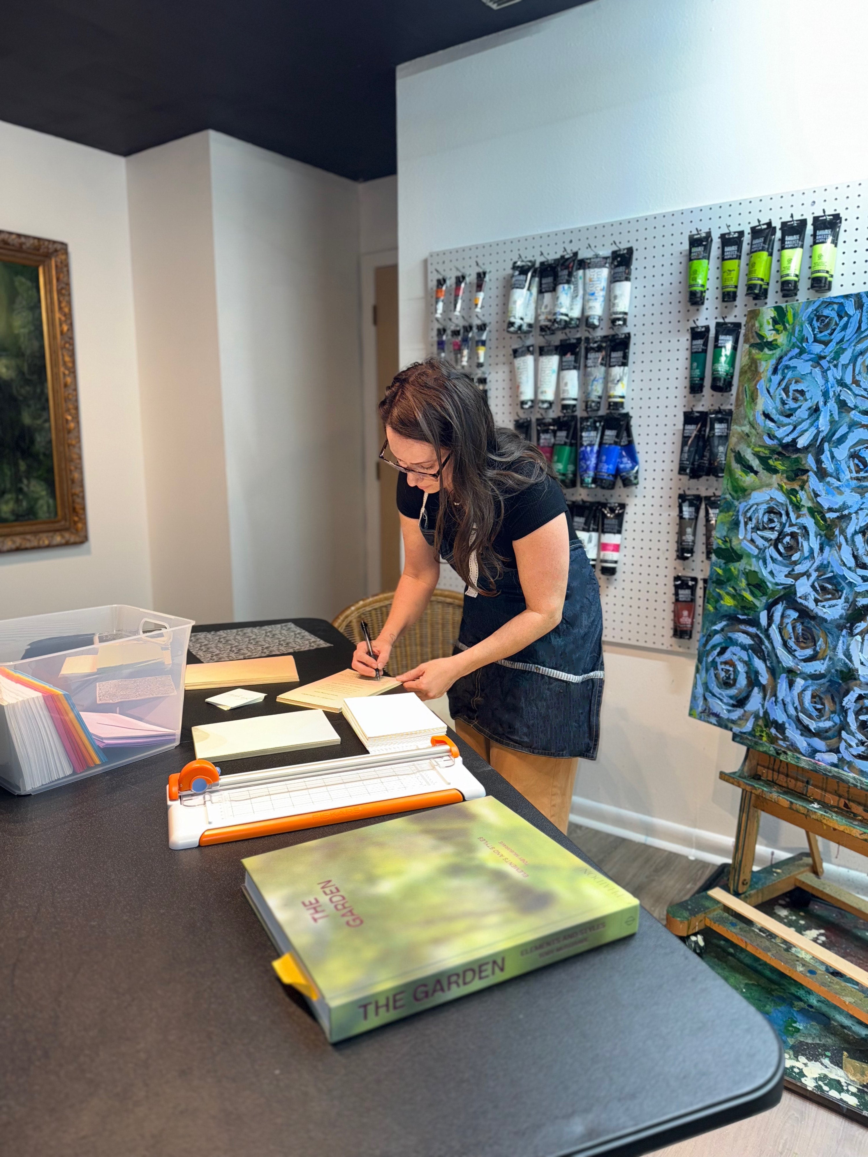 The Living Canvas Letter extends this practice through a monthly edition: a signed 5 × 7 work and a written reflection from the studio.